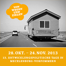 Von Ende Oktober bis Mitte November 2013 fanden zum 13. Mal die Entwicklungspolitischen Tage in Mecklenburg-Vorpommern statt. Organisiert wurden sie vom Eine-Welt-Landesnetzwerk M-V zusammen mit mehr als 30 Vereinen und Initiativen. Die Teilnehmenden hatten wieder mehrere Wochen lang die Qual der Wahl zwischen unterhaltsamen Stadtrundgängen, außergewöhnlichen Filmen, packenden Vorträgen und jeder Menge Workshops und Mitmach-Aktionen.